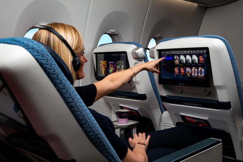 Todas las cabinas de larga distancia cuentan con esta nueva oferta de entretenimiento, que podrá disfrutarse en una gran pantalla individual de alta definición. En las cabinas más modernas la resolución de pantalla es de 4K que incluye conexión Bluetooth, lo que permite a los pasajeros usar sus auriculares personales.