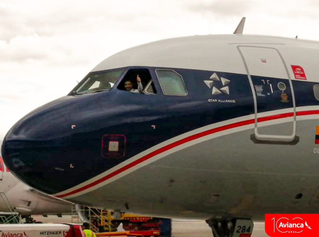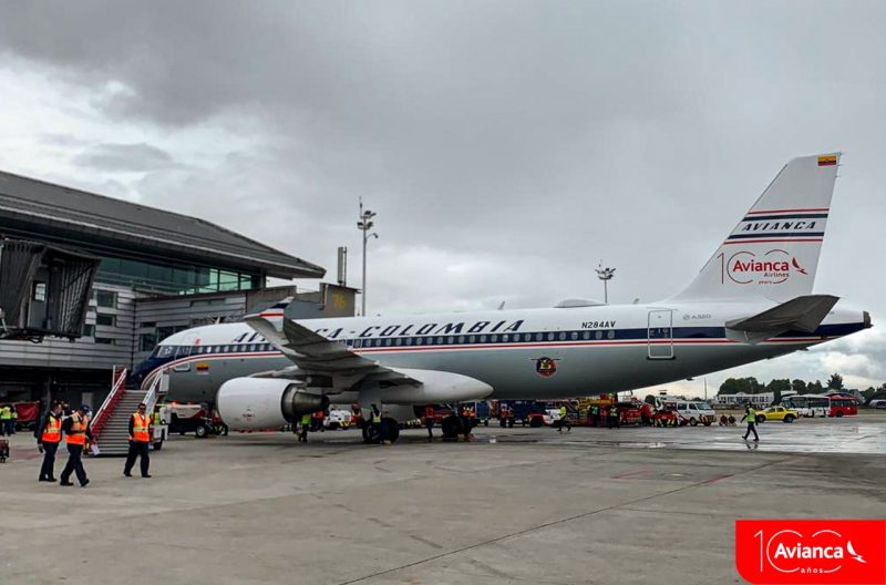 Este avión se pintó además como un homenaje conmemorativo de la celebración de los 100 años de Avianca volando ininterrumpidamente por los cielos de América y Europa.