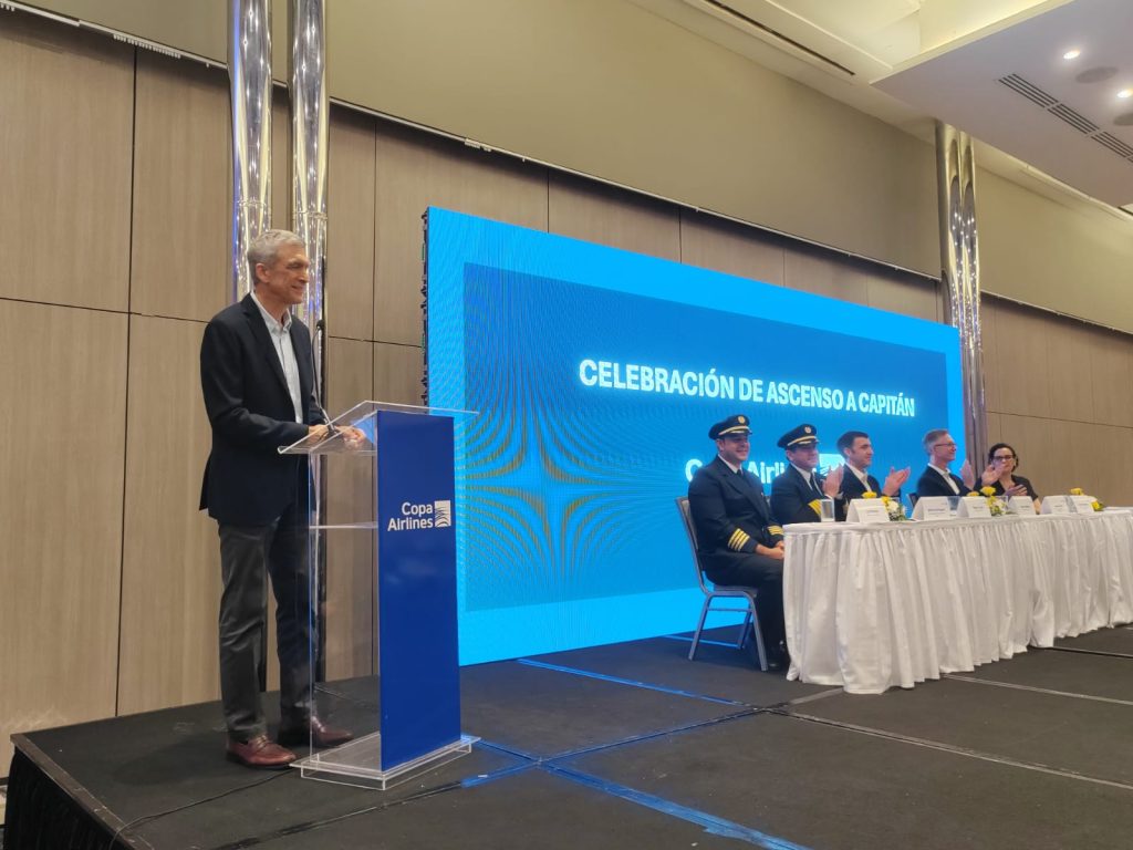En el acto de ascenso a capitanes, el presidente de Copa Airlines, Pedro Heilbron, resaltó el esfuerzo de los primeros oficiales y el apoyo de sus familiares, lo que han contribuido con el crecimiento de la aerolínea, que apenas contaba con 14 pilotos cuando él inició su carrera.