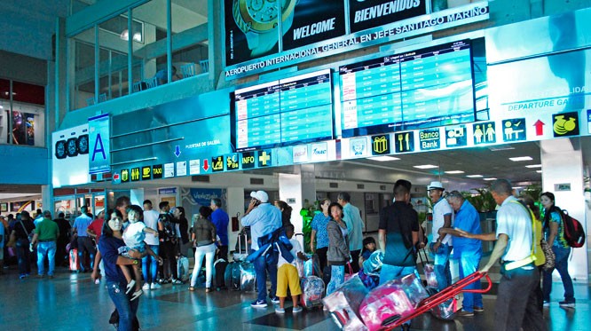 Más de 140 pasajeros permanecen varados en el Aeropuerto Santiago Mariño de Nueva Esparta, Venezuela, debido a que no pueden pagar sus pasajes en bolívares, la moneda local.