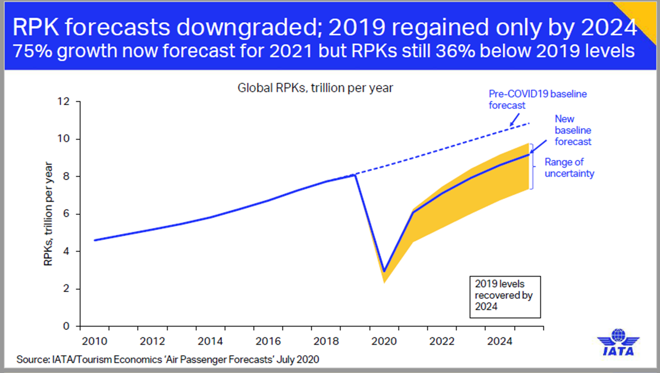 El 75% de crecimiento ahora se pronostica para 2021, pero los RPK siguen 36% por debajo de los niveles de 2019