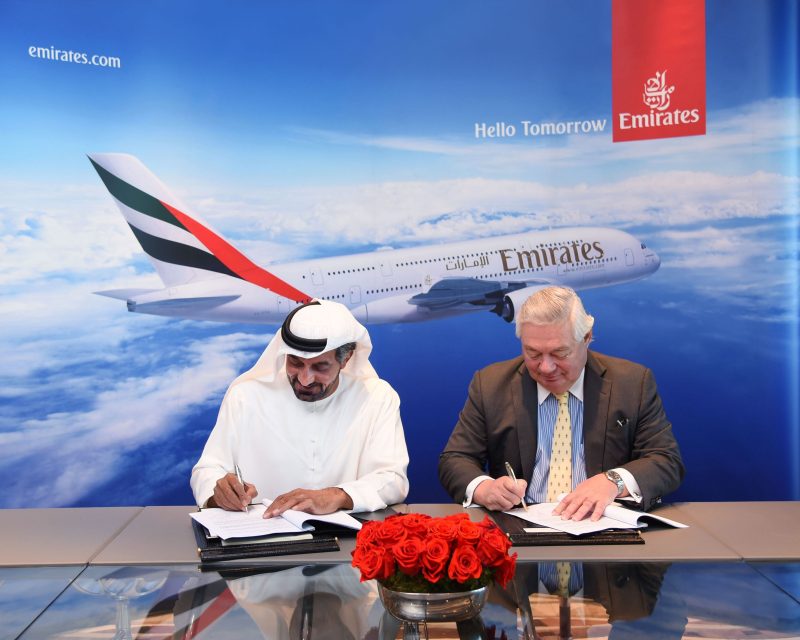 El acuerdo fue firmado en la sede de la aerolínea en Dubai por el director ejecutivo de Emirates Airlines and Group, Sheikh Ahmed bin Saeed al Maktoum y John Leahy, director de operaciones de clientes de Airbus Commercial Aircraft. Las primeras entregas están previstas para el año 2020.