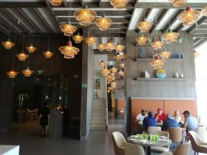 El restaurant más convencional tiene pisos con estilo vintage, que cuentan el pasado y presente panameño. En el techo, las lámparas diseñadas con sombreros chinos con cestas en el medio, son una muestra de la fusión cultural en el Istmo.