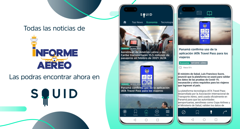 Informe Aéreo, el portal de noticias de aviación y turismo con sede en Panamá, Hub de las Américas, ahora se extiende a más países, a través de una alianza con SQUID, plataforma tecnológica que difunde noticias, fundada en Estocolmo, Suecia, con presencia en más de 60 países.