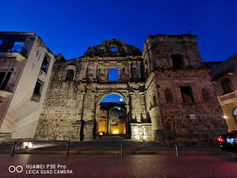 La siguiente parada fue en la Iglesia de la Compañía de Jesús donde se pueden conocer y admirar sus imponentes ruinas. Este lugar es uno de los puntos más visitados de Casco Viejo y se decidió utilizar el Ultra Wide mode que nos fue de gran ayuda ya que resalta la belleza de las estructuras gracias a que la funcionalidad permite capturar de manera práctica y sencilla un mayor ángulo de visión sin movernos de donde estamos, a la vez que nos garantiza una excelente luminosidad. Fotografías con estas características antes solo las podíamos realizar con costosas cámaras profesionales, pero ahora con la tecnología del Huawei P30 Pro es mucho más fácil obtenerlas en cualquier lugar.